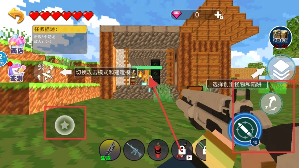 3、于游戏操作过程里,借助右侧的功能按钮来切换攻击模式与建造模式。在此过程中,既能挑选武器展开攻击,又能够选择创建怪物与陷阱,以此完成游戏任务,提升你的游戏体验。