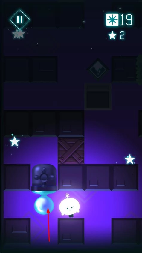 2、于关卡内,轻点屏幕引导小星星躲开障碍物,收集发光元素,借助场景里的机关开启通路,一步步朝着终点迈进。