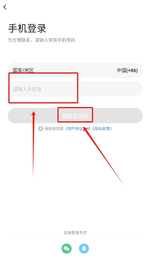 2、在登录界面,选择手机号登录方式,填入自己的手机号,获取验证码后准确输入,完成登录操作。