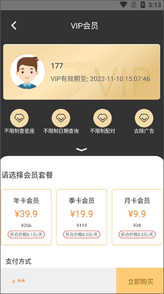2、用户在此处需支付一定费用成为会员,方可开展后续的配对。