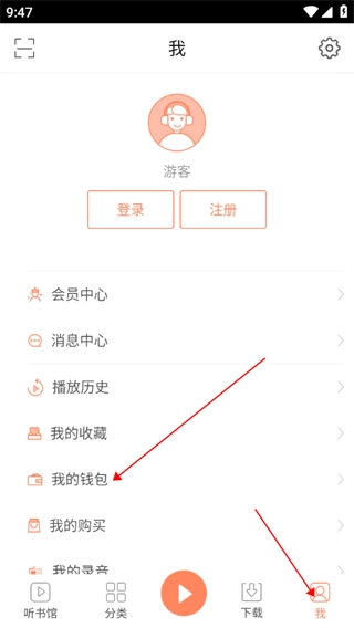 1. 开启软件,轻点底部的“我”选项,接着点击“我的钱包”选项。