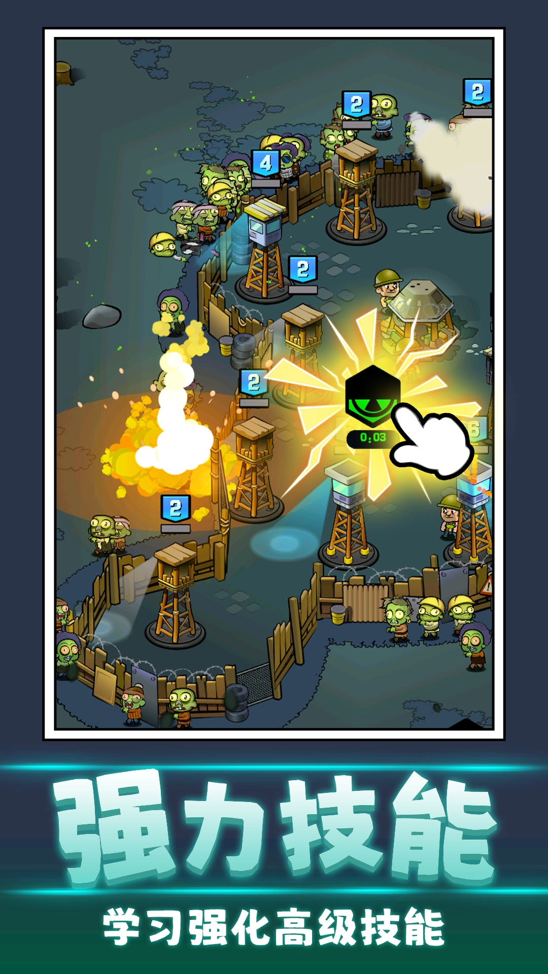 提升你的防御塔技能与能力,合理、精准地运用特殊技能以抵御僵尸群体的进攻。