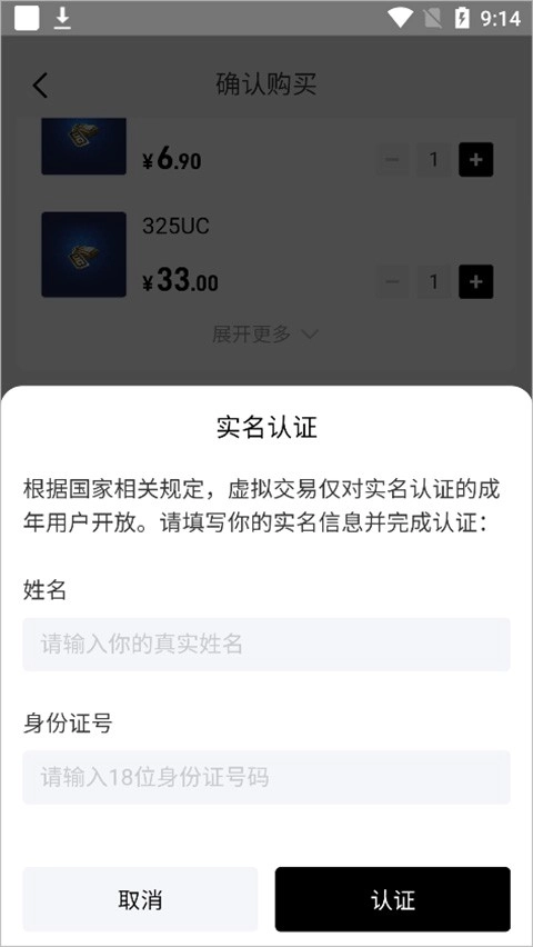 8、接着输入身份证和姓名认证下。