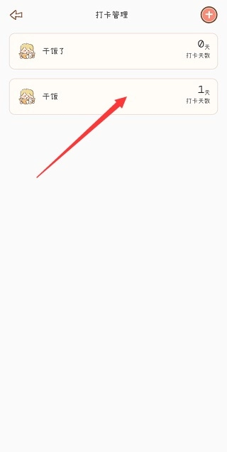 2、进入打卡管理,选中一个打卡目标。