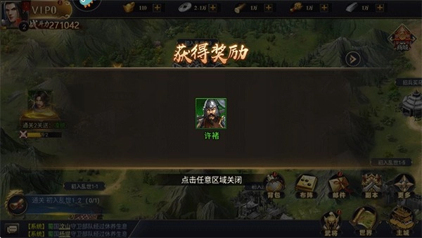 点击一键上阵,解锁获得的武将上场战斗;