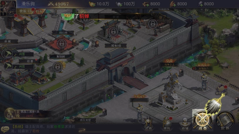 新玩家首次登录就能领取貂蝉、10万元宝、100万银两、贵族经验等奖励。