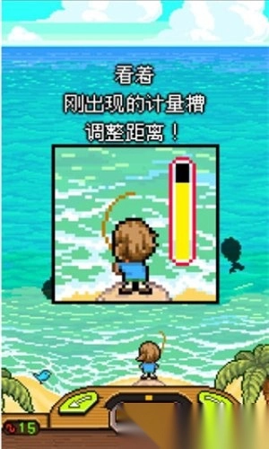 这款以钓鱼为主题的休闲游戏,让玩家能沉浸式体验垂钓的乐趣。从挑选合适的钓竿到搭配不同的饵料,每个细节都力求还原真实的钓鱼场景,让你仿佛置身于波光粼粼的水边,感受鱼竿传递的细微震动。游戏采用像素化的卡通画风,结合阳光明媚的海岛风光,整体氛围轻松惬意,无论是等待鱼上钩的悠闲时刻,还是收获大鱼的惊喜瞬间,都能让人沉浸在这份悠然自得的快乐里。