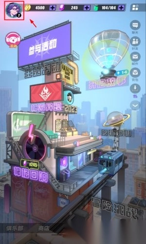 先启动这款名为众神派对的游戏应用,等进入游戏界面后,找到并点击界面左上角那个显示头像的按钮。