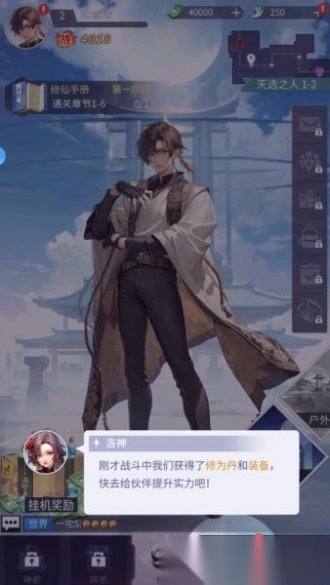 战斗获胜后能得到修为丹和装备,这些道具可用于主界面的伙伴选项来增强自身实力。