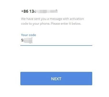 4、这时会收到一条验证码,把验证码输入对应位置,然后点击【NEXT】。
