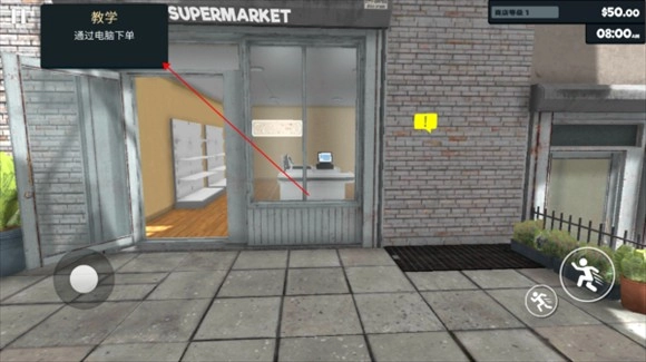 根据教程的指引,打开右侧的门,进入房间后点击电脑,选择您想销售的商品以及对应的货架。