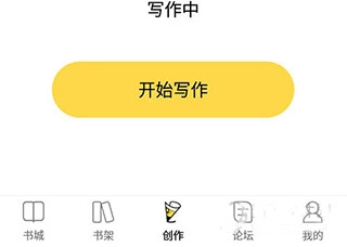 1、首先打开,进入软件之后点击底部菜单栏中间的创作选项,切换至创作页面,点击其中的开始写作按钮;