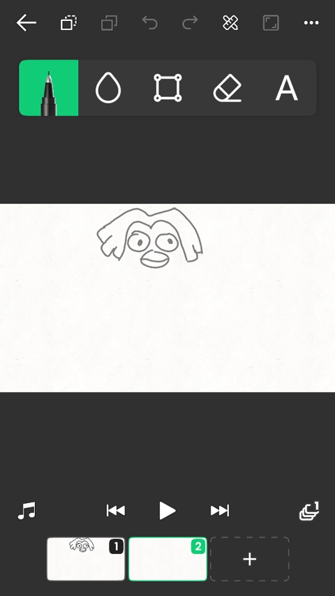 3、接下来就可以开始创作了,在一块画布上画出你想要的样式,接着点击下方再创建一块画出不同的样式,点击下方的播放按钮就可以实现动画了。