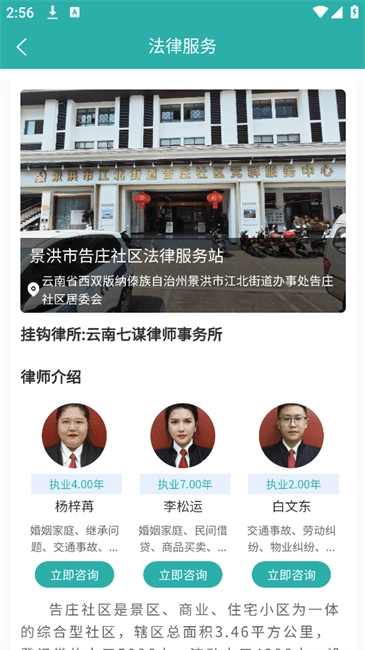 集成法律咨询服务后,居民能随时借助App向专业律师咨询法律问题,得到权威解答,从而提升法律意识,保障自身合法权益,助力法治社会建设。