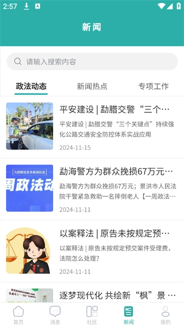 一款面向西双版纳地区居民的政法服务平台,通过整合各类政法资讯与便捷的问题反馈渠道,显著提升了当地社会治理的效率。它不仅能帮助居民及时获取相关政法动态,还支持大家通过线上渠道反映遇到的问题,为推动城市文明建设和法治社会发展贡献了积极力量。感兴趣的居民可以进一步了解该平台的具体功能。