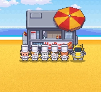 采用经典的像素画风,色彩鲜亮明快,角色造型设计十分可爱,整体洋溢着满满的童趣感与温馨氛围。