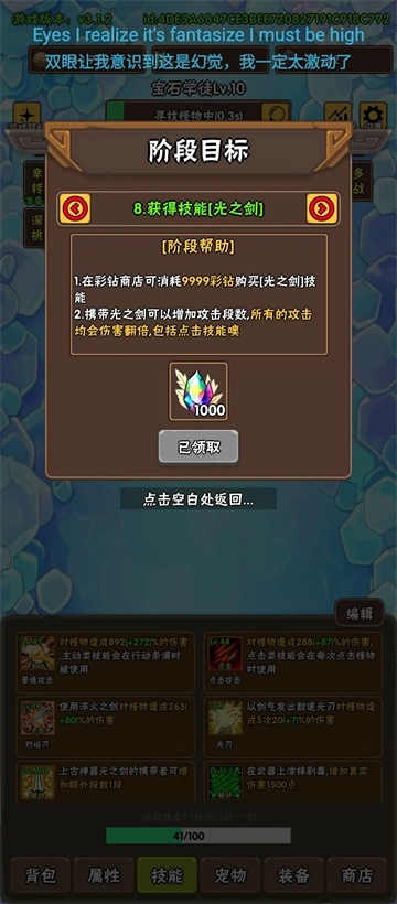 3前期把彩钻都投入到技能槽、金手指和挂机装置这些地方了,结果光之剑的购买时间被拖得很晚。