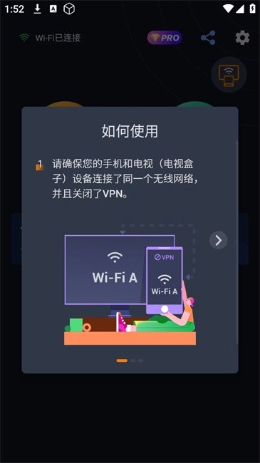 请确认手机与电视(或电视盒子)已连接至同一无线网络,同时关闭VPN功能。
