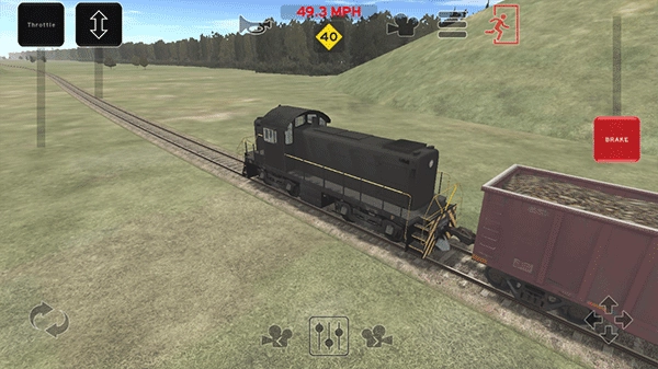 调整右上方的红色操纵杆能让列车启动运行,操作左上方的控制杆可调节列车的行驶速度、实现倒车功能并切换驾驶视角,而那个红色人形图标则是用于下车的按钮。