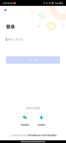 除了常规登录方式外,用户还能通过页面底部的快捷登录选项完成登录操作,不过在进行登录前,需要先勾选页面底部的用户协议和隐私政策相关选项。