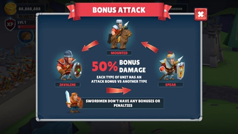 在这里需要留意的是,不同兵种之间存在克制关系,因此玩家在攻城略地的过程中,应当合理搭配自己的阵容。
