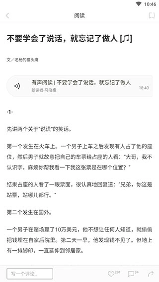 点击作者的文章即可进入文章阅读界面,在该界面能查看网友的评论、点赞数和转发数,要是你喜欢这位作者的文章,还可以关注该作者。