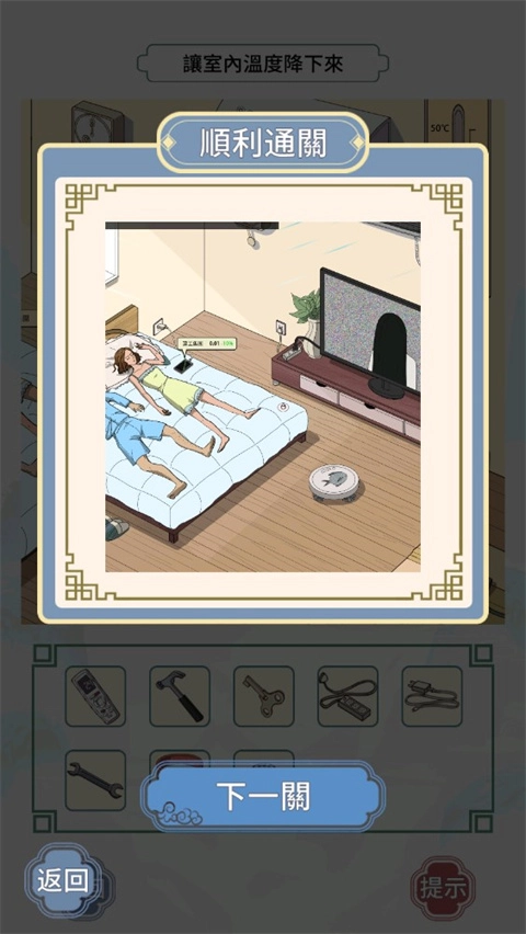 通关的关键是依次操作DV道具,点击时钟、床上的孩子、床上的杂物、地面的废弃物以及电视机这几个位置。
