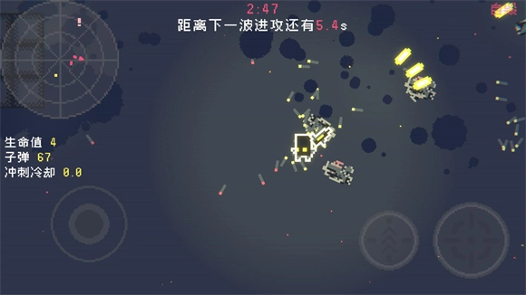 正式开始后左边控制角色的移动,右边是闪避和射击。