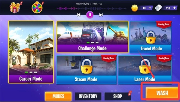 接下来要挑选一个你想体验的关卡,接着点击wash按钮。