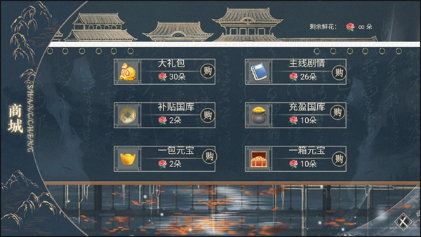 第一次出宫小狐狸会根据你送的花数给元宝和国库。