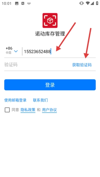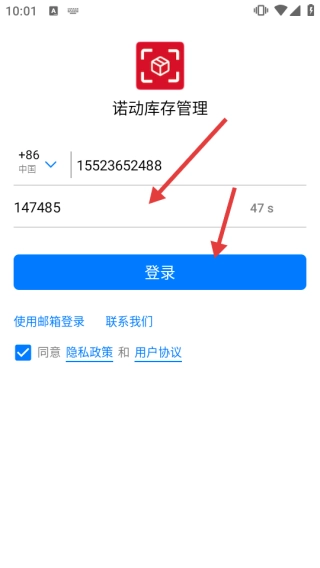 打开诺动库存管理,在隐私政策弹窗点击【同意】。