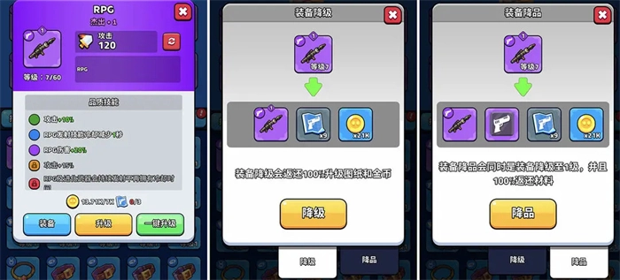 第一天可根据现有装备情况灵活搭配,后续获取更优装备时,可将前期升级过的装备进行降级操作,系统会全额退还升级该装备所消耗的材料。