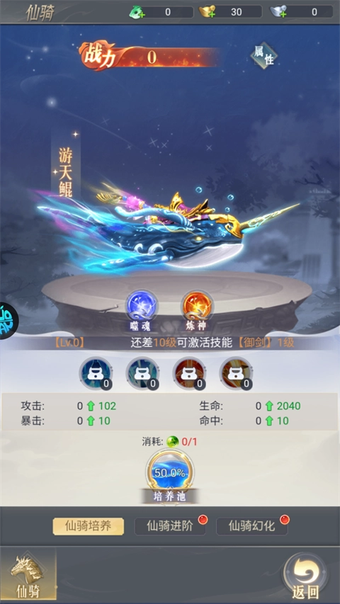 仙骑进阶之后可以解锁技能,提升战斗力。