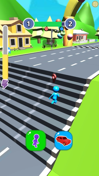 触碰那个汽车形状的标识,就能立刻切换成车辆形态,移动速度会大幅加快,轻松甩开身边的竞争者。