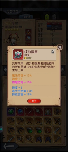 魔剑士若获得镇长赋予的勇气祝福,再佩戴上领袖徽章,其伤害增益效果将达到百分之一百零三。