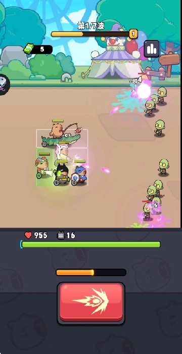 游戏中的战斗过程无需手动操作,一群水豚会主动对袭来的僵尸群展开抵抗。玩家要借助搭配不同类型的水豚,来完成各个关卡的考验。