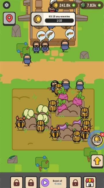 在农场场景里,你得巧妙安排各类战斗单位,借助它们独特的能力与属性间的相互制约,来阻挡一波又一波袭来的怪物。