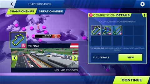在主界面点击career选项,就能挑选不同类型的比赛进行游玩,选定比赛类型后即可正式开启游戏。