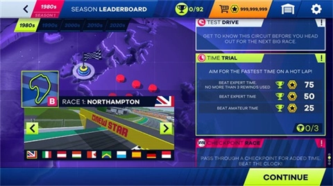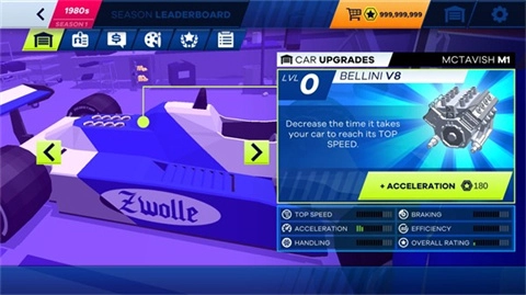 参与大奖赛、淘汰赛、计时赛、关卡赛以及一对一的竞争赛事。在赛事的空闲时段,你可以决定如何升级自己的赛车,或是挑选哪些员工福利:从赞助商提供的汽车部件到更高效的进站服务。等你拿下一个赛季的胜利后,就能开启下一个十年的赛事征程,驾驶全新的赛车去应对一批全新的对手和挑战!