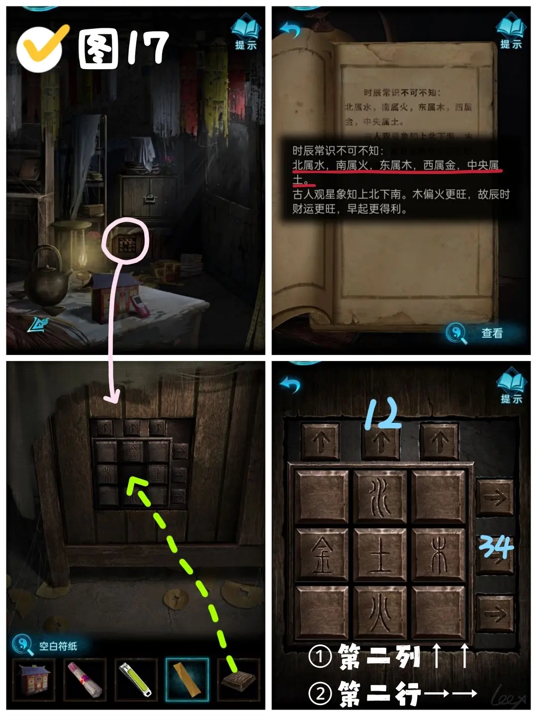 在婚礼相关商品的店铺里,找到右侧陈列柜左上方的爆竹,启动装置后留意它闪烁的先后次序,待其停止后依照该顺序操作,即可得到一个小部件。随后前往易寿堂,把这个小部件装在下方的柜门上,再依据《风水民俗小知识》第二页记载的方位对应规则——北方属水、南方属火、东方属木、西方属金、中央属土,来解开柜门的机关,从而获取拨浪鼓。