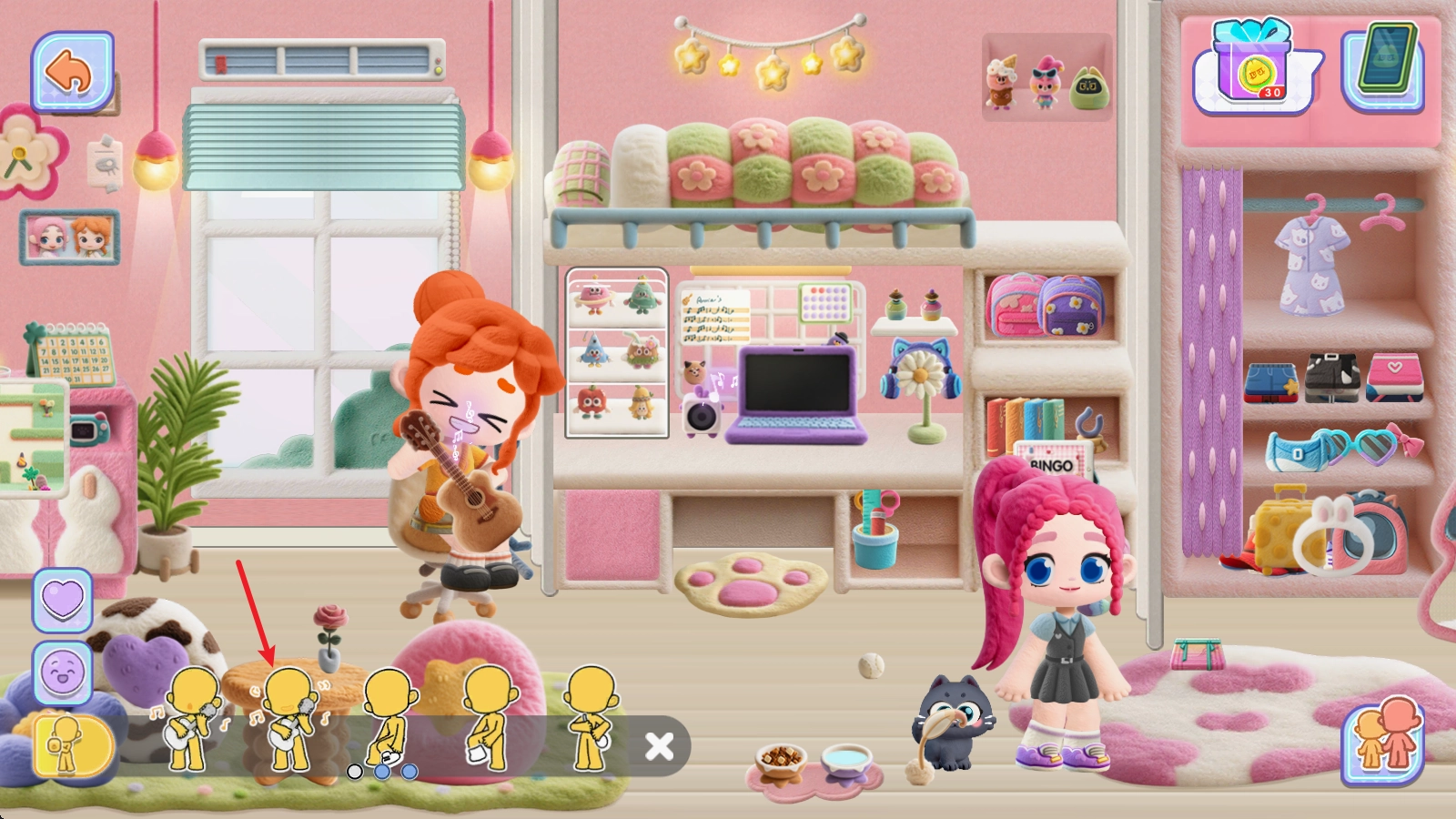 场景里还有角色能够活动,点击左下角还能做出各种有趣的动作,比如这里的弹吉他。