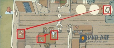 进入小木屋后,玩家能在客厅里发现沙发旁边的画框,别忘了把它捡起来呀!