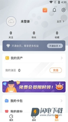 打开随乐游云游戏应用,点击界面右下角的“我的”选项,然后选择页面上方的“未登录”按钮完成注册操作。