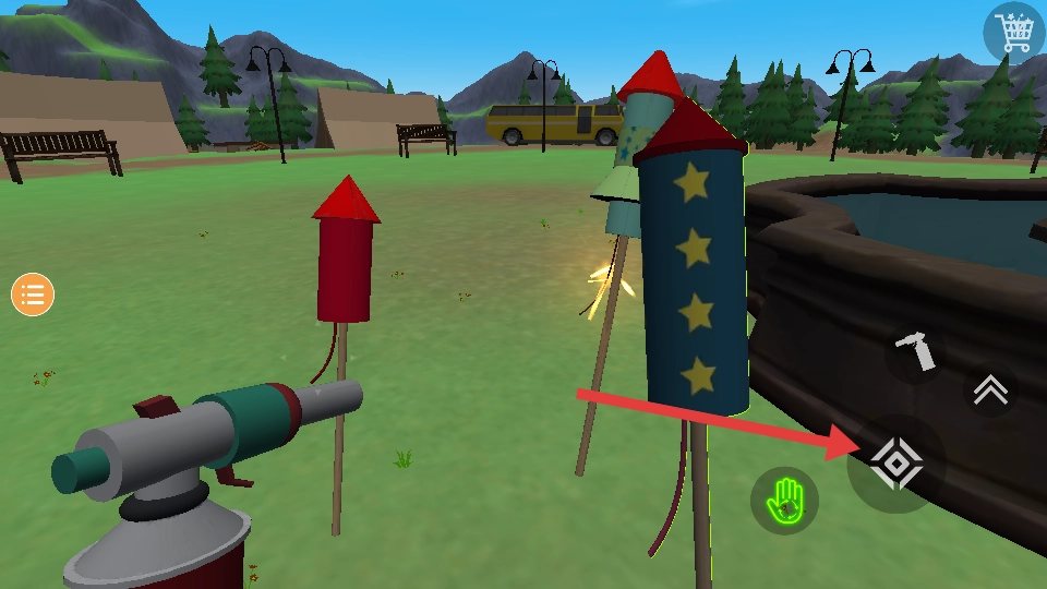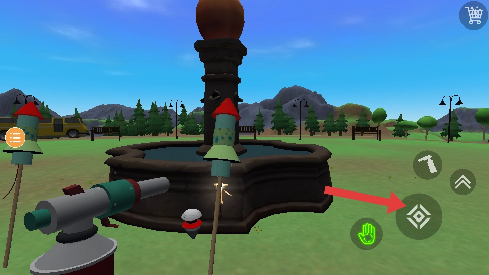 想要拥有绚丽的烟花并摆出独特造型吗?你可以点击界面右上角的购物车图标,从琳琅满目的烟花款式里挑选出自己喜欢的,稍作等待,大约十秒钟后就能成功获取;接着点击那个形似手部的道具,通过连续按下按钮来放置烟花,发挥你的创意,就能摆出各种你想要的形状啦。