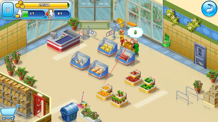 引导已取好商品的顾客前往收银台完成结账,通过这样的方式积累金币,从而提升超市的收益。
