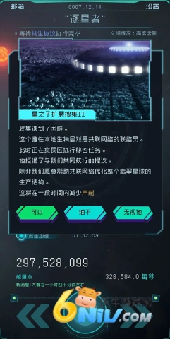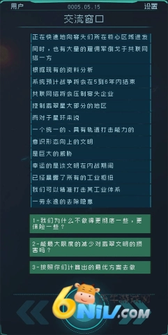 在第三星的对话框里,需要决定是否介入共联网络革命,可选择给予他们一次机会,或是在无威胁的前提下不进行干预,同时要尽可能降低对翡翠文明的损害。共生之后,你会目睹到积极的转变。