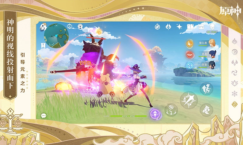 在充满未知的冒险旅程里,你能遇到拥有独特能力的伙伴,不妨试着探索最适合的队伍组合,用旅途中收集到的材料来提升角色实力,最终大陆上的魔物与秘境都会被你一一攻克。站在绝云之巅,阴晴雨雪、云卷云舒仿佛都近在咫尺。可失散的亲人还没团聚,「原神」背后的真相也依旧没有揭开……出发吧,旅行者,真正的冒险才刚刚拉开序幕呢。