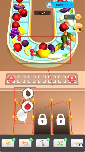 这款游戏最关键的挑战在于如何确定水果的摆放位置,毕竟承载水果的货柜始终处于转动状态,这无疑让玩家的判断过程变得更加复杂。