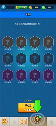 完成第一次挑战以后我们可以来升级自己的天赋;