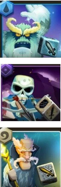有一种冬季主题的召唤物和一种神话中的飞行生物,两者所需的召唤能量数值相同,都是十六点。前者的单次攻击上限能达到六点,并且附带使目标短暂无法行动的控制效果,但在面对强大的首领级敌人时,它的伤害输出会被限制在四点以内。